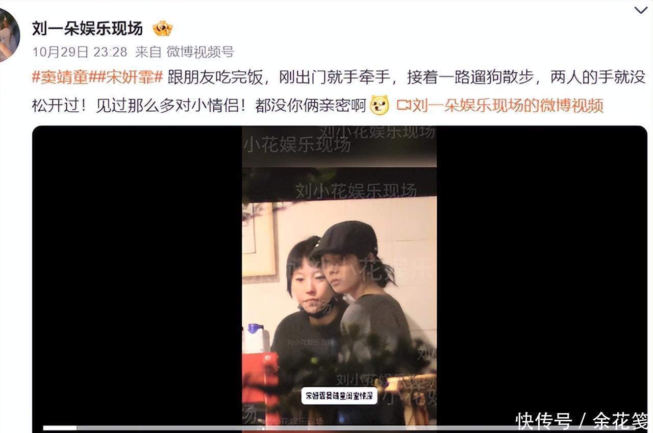 特殊细节方面,2024年元旦宋妍霏发钩织小女孩图案,同日窦靖童自拍衣服上便有该图案;跨年时窦靖童晒的针织娃娃图案,之后也出现在宋妍霏裤子上。这些同款绝非偶然,普通人不会频繁与朋友共享衣物、出现图案“隔空呼应”,估计只有关系亲密、生活交集多的人才会如此。2025年10月30日遛狗时,两人聚餐后出门就自然牵手,换宋妍霏牵狗后仍未松手,途中宋妍霏还帮窦靖童拨乱发;共同出席活动时,窦靖童会偷偷瞄宋妍霏,对视后忍不住大笑,默契与甜蜜显而易见。